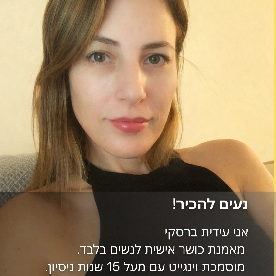 אני עידית ברסקי, מאמנת כושר לנשים מתוך שליחות ואהבה אמיתית לתחום. עבורי, כל אישה היא עולם ומלואו – ולכן כל אימון נבנה בהתאמה אישית, במרחב בטוח ומעצים. אני מאמינה בכוח של תנועה, חיזוק וביטחון עצמי, במיוחד עבור נשים בכל שלב בחיים. הבחירה להתמקד בנשים בלבד נובעת מהרצון ליצור חיבור עמוק ואותנטי עם כל מתאמנת. הסטודיו שלי מעניק פרטיות, מיקוד וחווית אימון שונה – כזו שלא רק מעצבת את הגוף אלא גם מחזקת את הרוח.